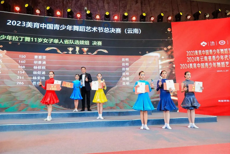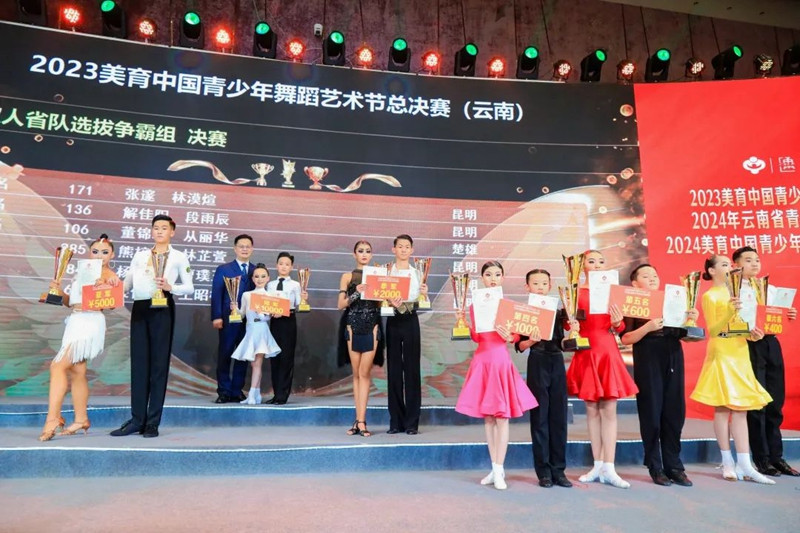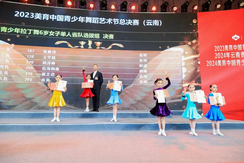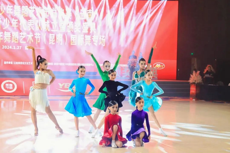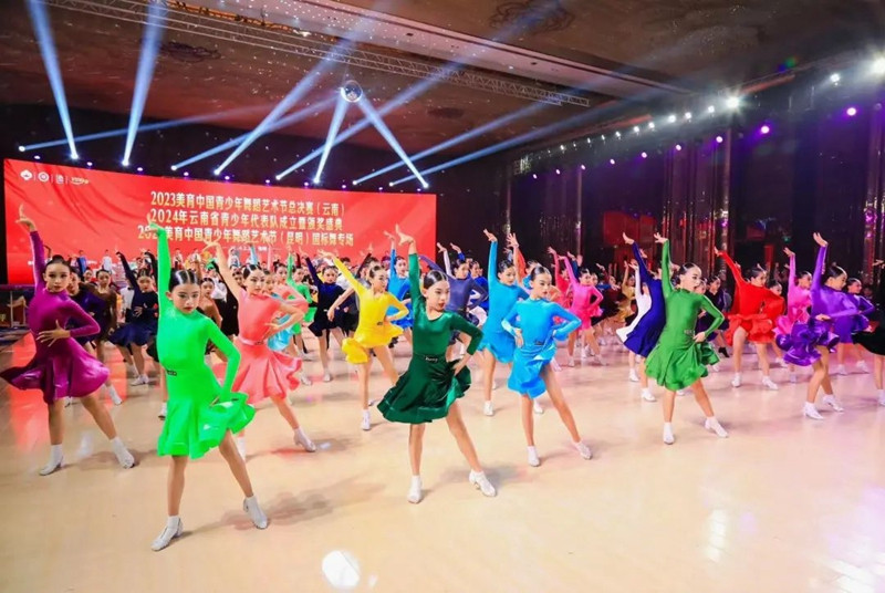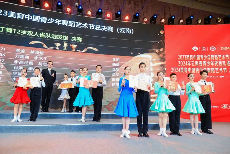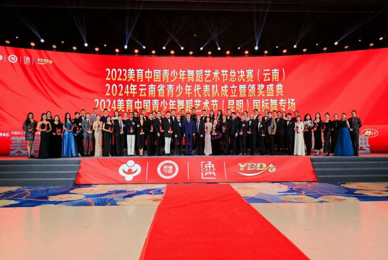开幕式时间来到了2024年1月27日,我们迎来了2023年度的最后一场比赛,站上这个赛场,为2023年全年的努力画上了圆满的句号!相信站上这个赛场的你怀着不舍的心情对2023年的自己挥手告别,转身拥抱2024更优秀的自己。 由中国关心下一代工作委员会教育中心、YBDA云南省国际标准舞协会作为指导单位,全国青少年美育教育成果展演管理办公室、中国通俗文艺研究会共同主办的2023美育中国青少年舞蹈艺术节总决赛(云南)、2024年云南省青少年代表队成立暨颁奖盛典、2024美育中国青少年舞蹈艺术节(云南·昆明)国标舞专场开幕式在昆明花之城豪生国际大酒店二楼怡美国际会议厅成功举办。 经过2023一年的比拼,共不到200名选手进入总决赛。